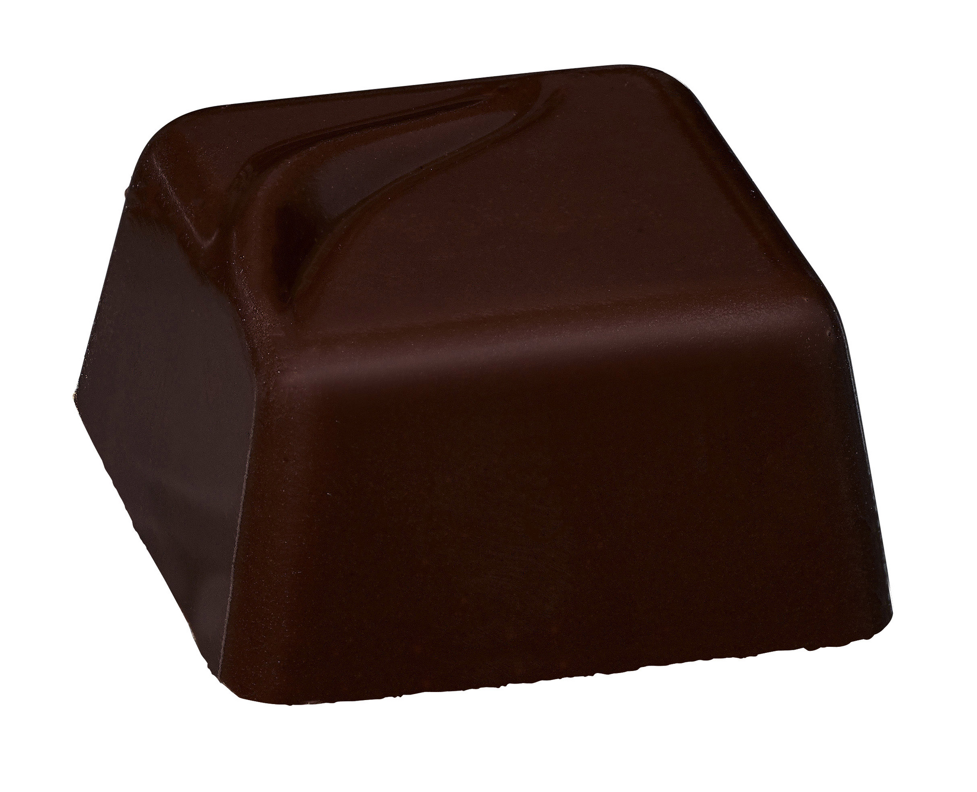 Bouchée de chocolat noir (cacao : 74 % minimum), fourrage praliné amande (60 % fruits secs).
